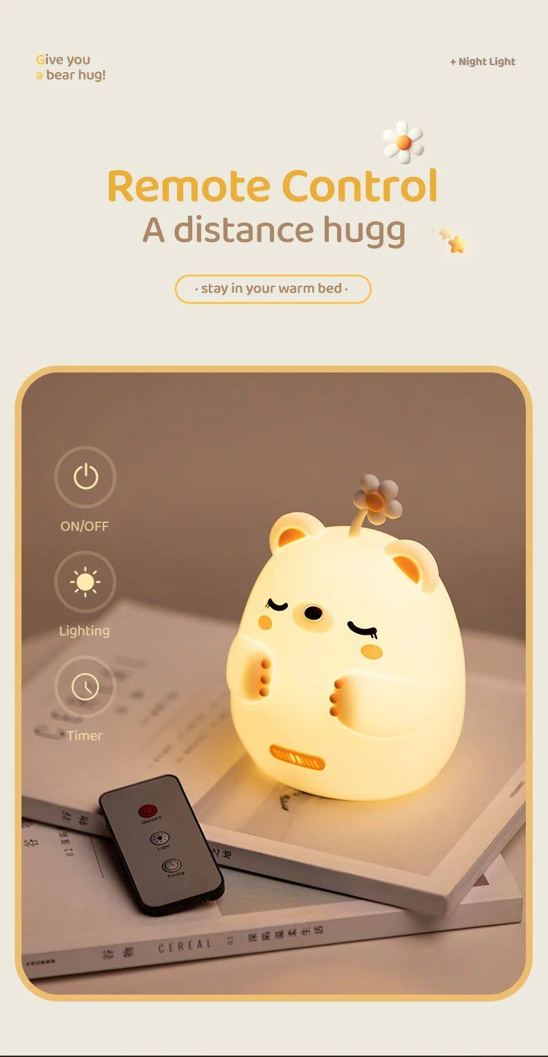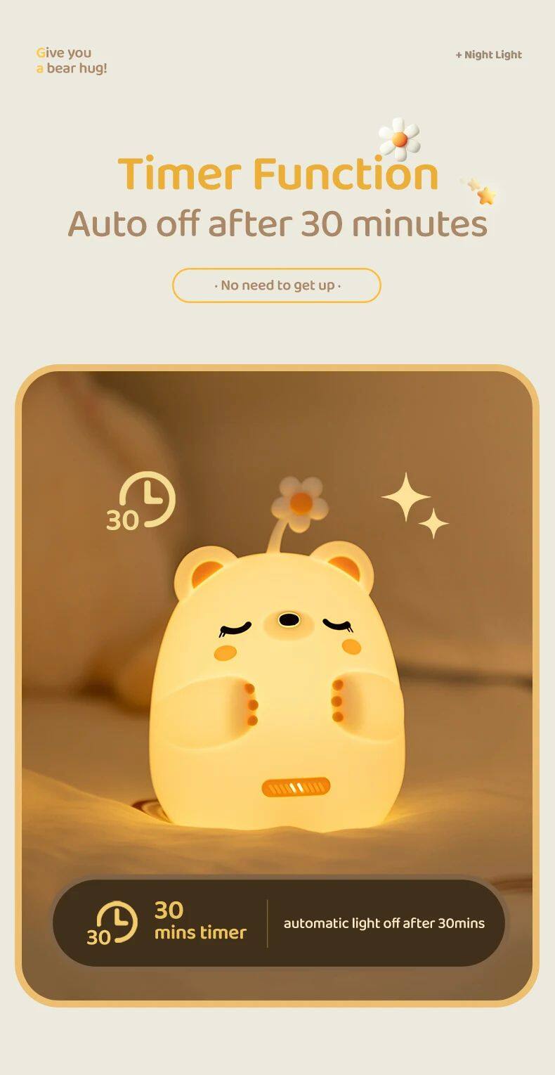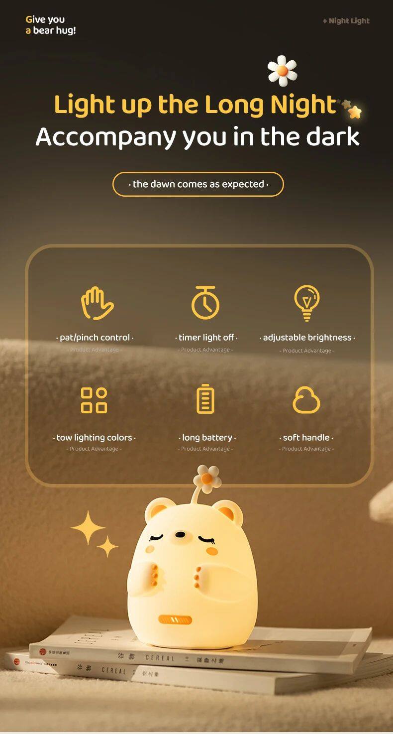 High Quality LED USB Rechargeable Soft Silicone Night Light Cartoon Bear Patting Lamp Bedroom Decor Touch Sensor Table Light