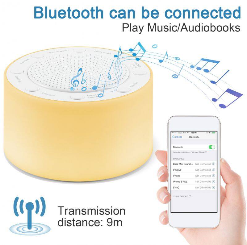 White Noise Sound Machine With 14 Soothing Sounds and Night Light Supporting Timer, Bluetooth Sound Device Playing Music,
