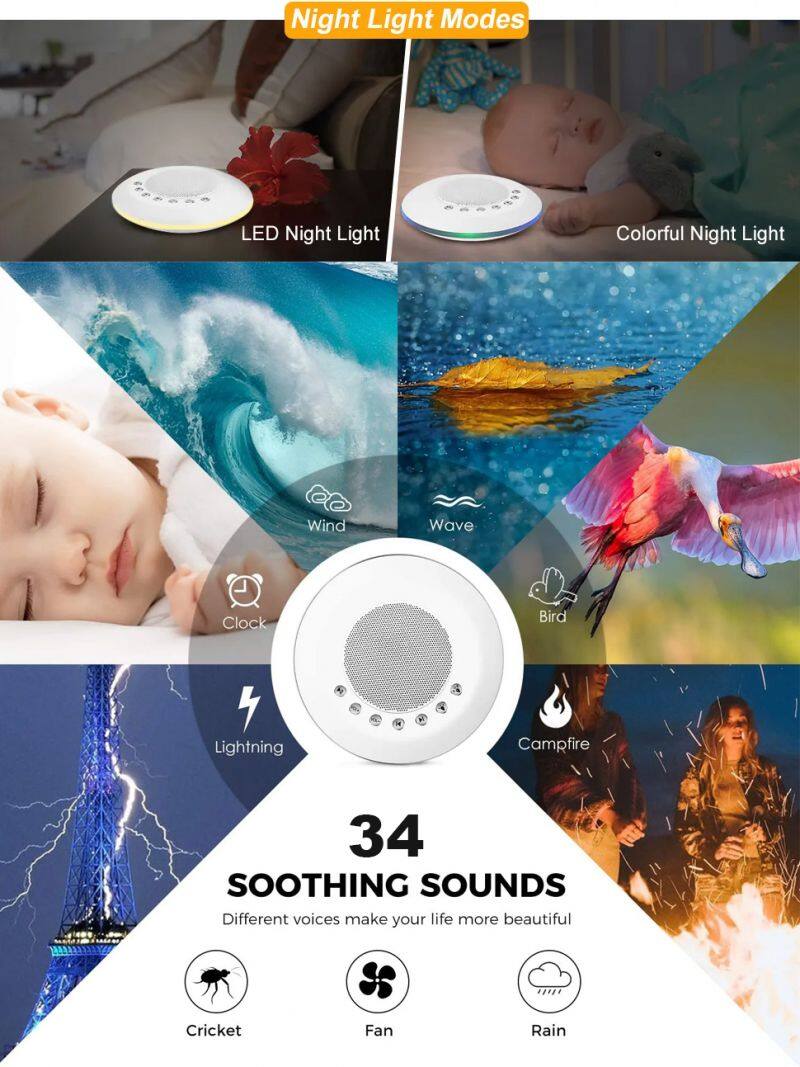 App Remote Control Smart White Noise Machine With 34Soothing Sounds Supporting DIY Scene, Sound Machine for Baby