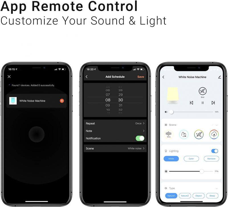 Smart White Noise Machine for Baby Adult Use With Colorful Night Lights 34 Soothing Natural Sounds 30min/60min/90min Timer