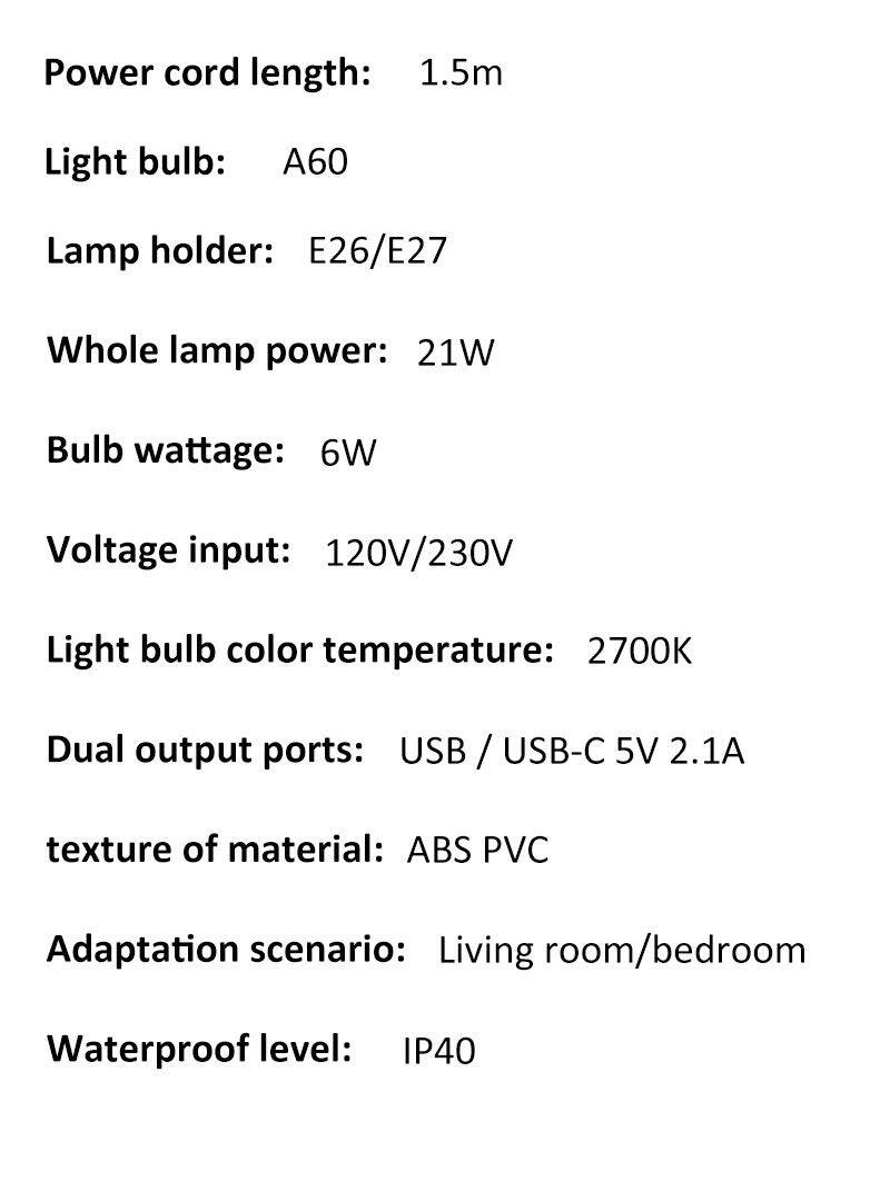 2. [USB/Type-C charging]: Equipped with USB/Type-C dual charging ports, charging power 5V/2.1A.