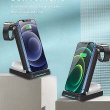 15W Wireless Charging Station Base Desktop Magnetic Phone Holder With LED Ambient Light Suitable for Mobile Phones and Watches