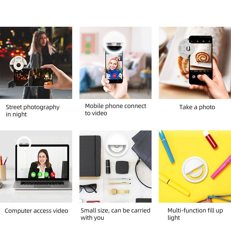 Rechargeable Portable Clip-on Mini Selfie Phone Ring Fill Light for IPhone/Android Smart Phone Photography