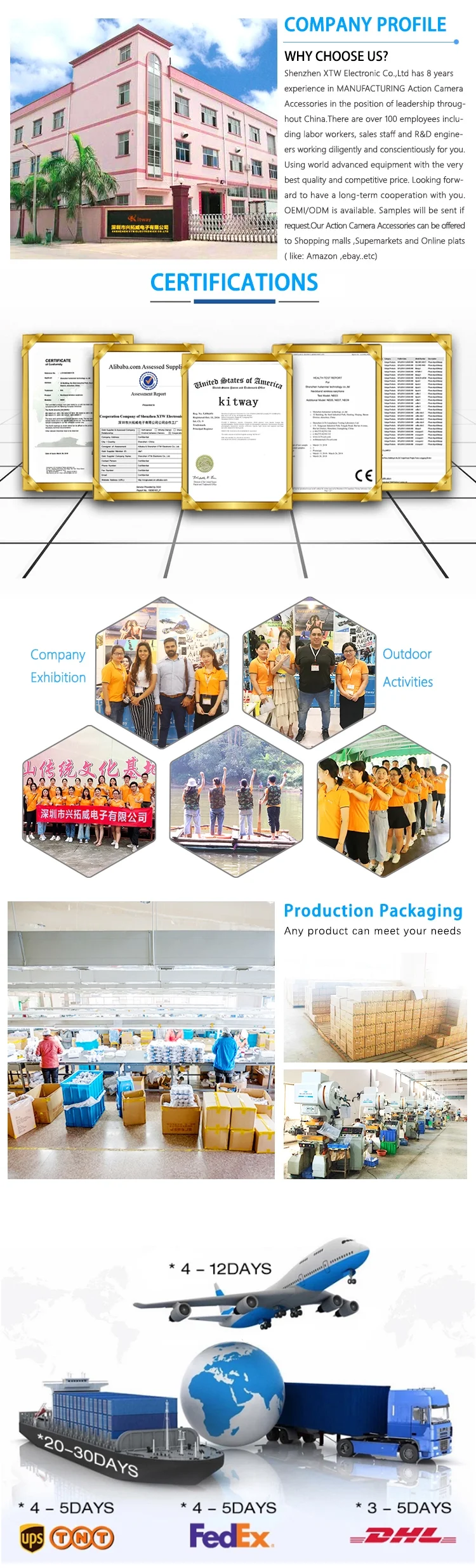 Shenzhen BDLX Electronic Co., Ltd. is located Shenzhen, China, founded in 2016. She's a professional , GoPro action camera accessories R&D, manufacture and sales company. There are over 100 employees including labor workers, sales staff