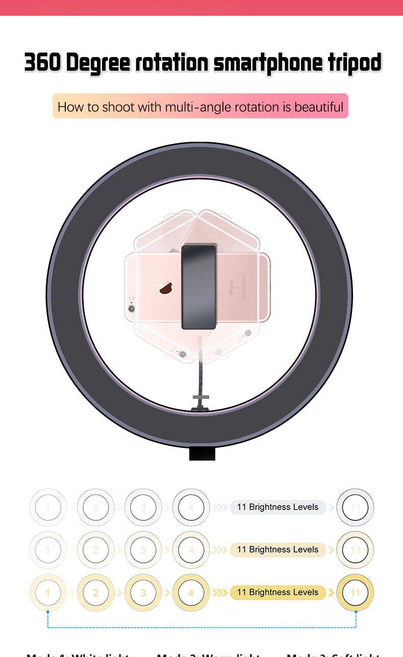 12 Inch LED Ring Light With Phone Holder And Flexible Hose Selfie Ring Light With 3 Light Modes And 10 Brightness Levels