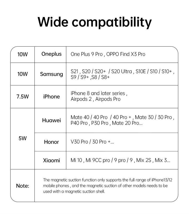Below wireless charger function mobile list for your conference.