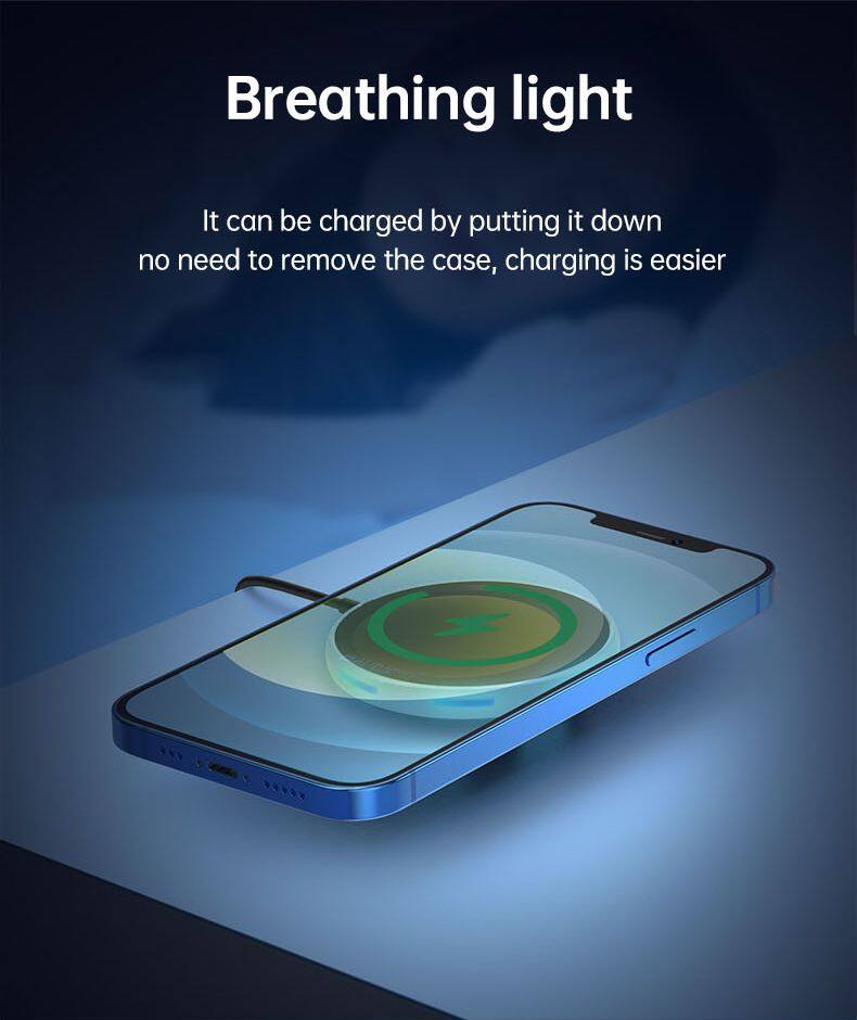 Magnetic Wireless Charger 15w for IP16-12 Magnet Charging Pad Chargers With Blue LED Light Strong Magnetic Mobile Phone Charge