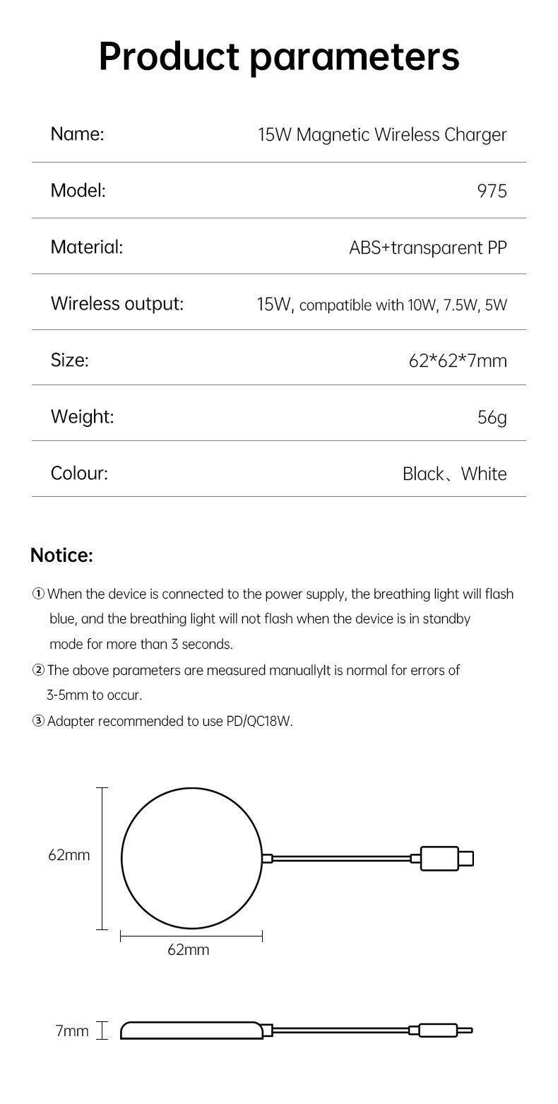 Product Name | Mag go fast wireless charger 15W | ||||||