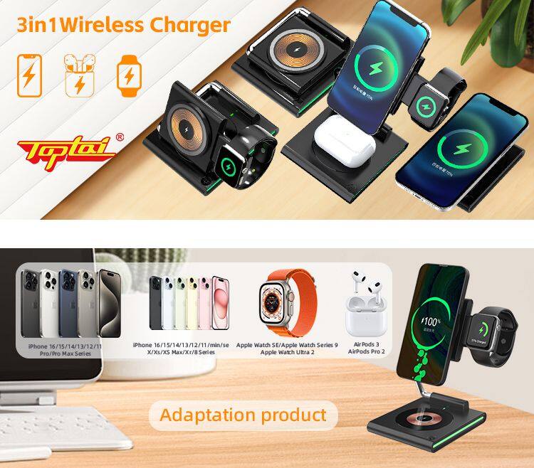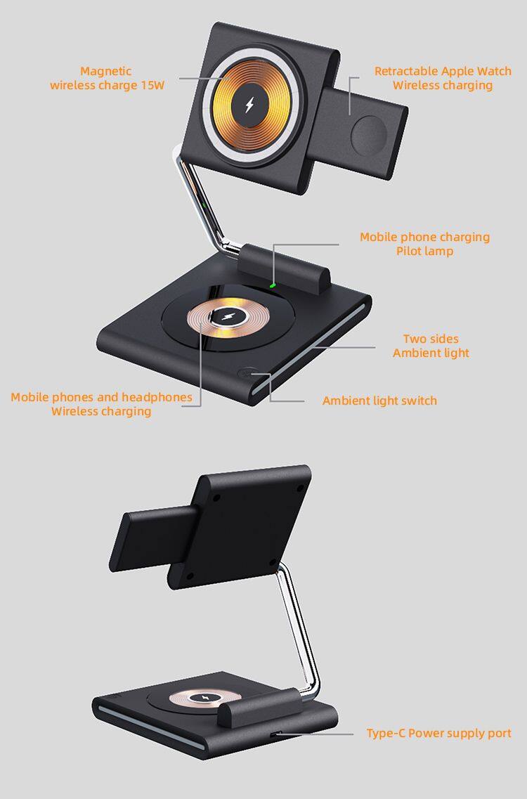 3in1 Foldable Wireless Charger Adjustable Multifunctional Stand Fast Charging Station for Earphone Smart Watch and Phone