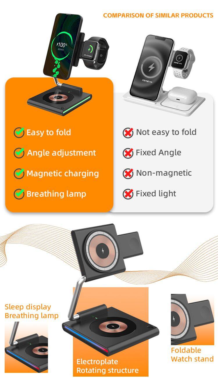 LED Custom Foldable Magnetic 4 in 1 Fast Wireless Chargers Phone Charger 15W Wireless Charger Stand