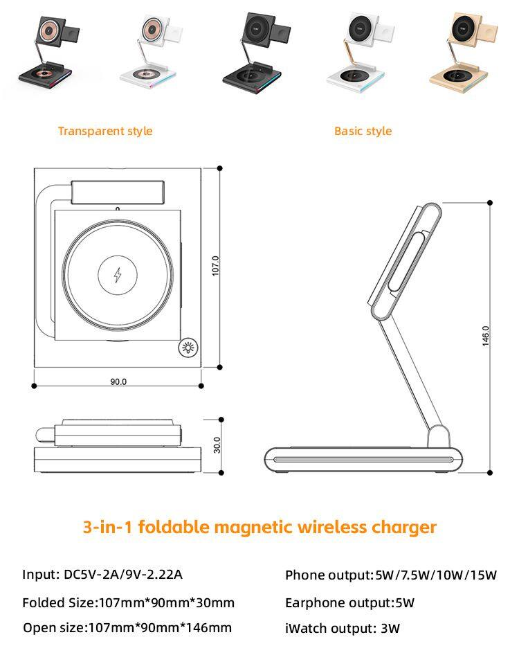Product name | 3 in 1 foldable magnetic wireless charger stand | ||||||