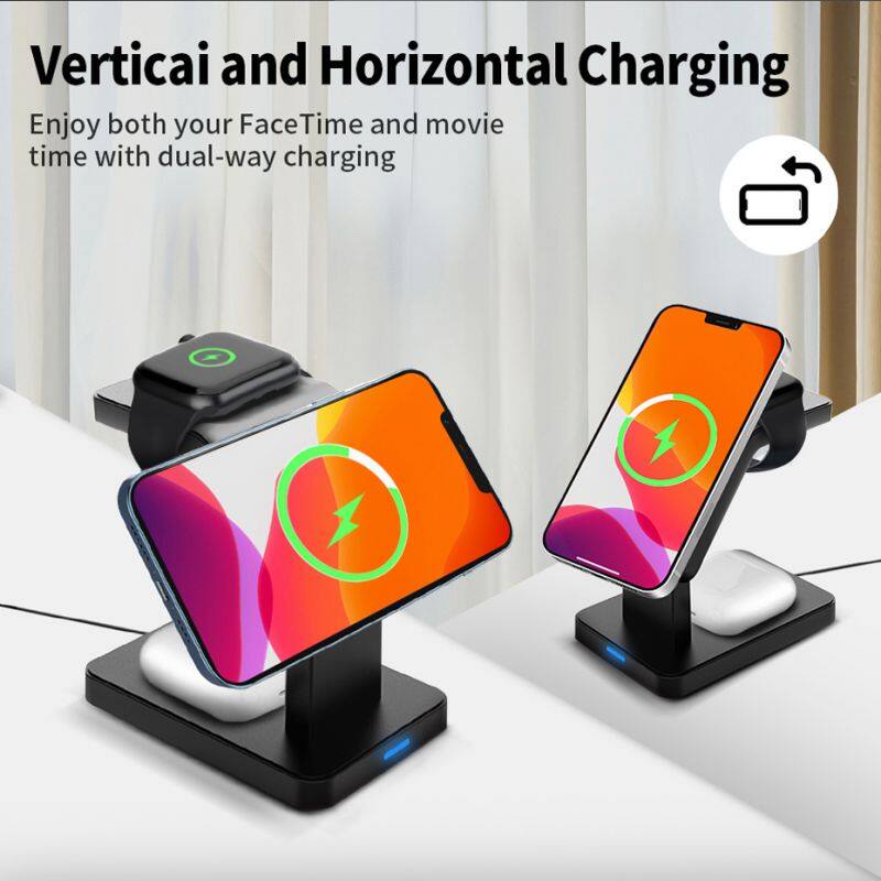 15W Multi Charging Station for Iphone 15 14 13 12 Phone Holder Magnetic Charger for Watch and Earphone 3 in 1 Wireless Charger