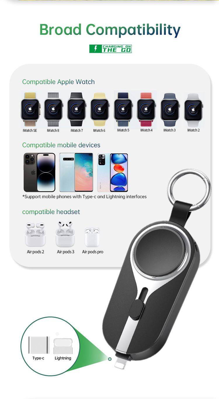 Portable Watch Emergency Power Bank 2000mAh for A Watch 9 8 7 6 5 3 2 SE Keychain Small Pocket 2 in 1 Pocket Magnetic Powerbanks