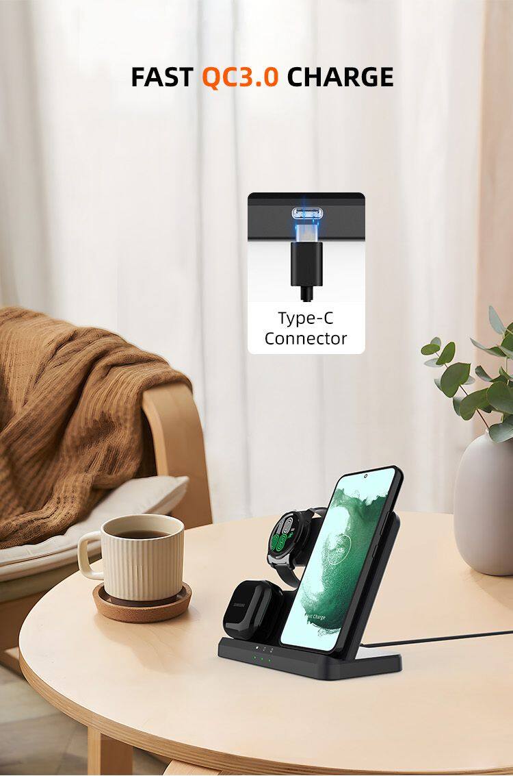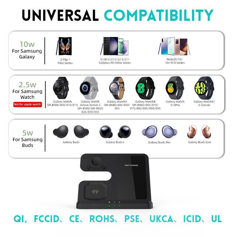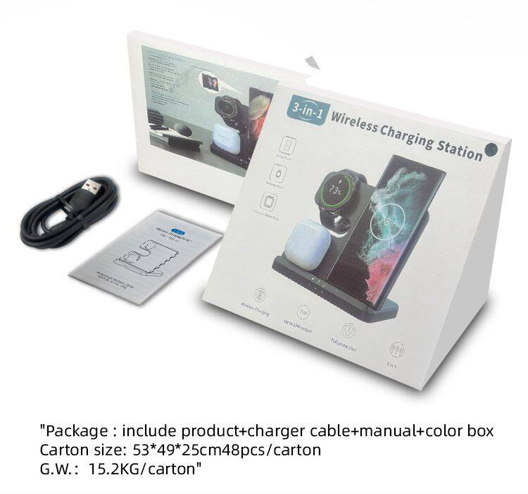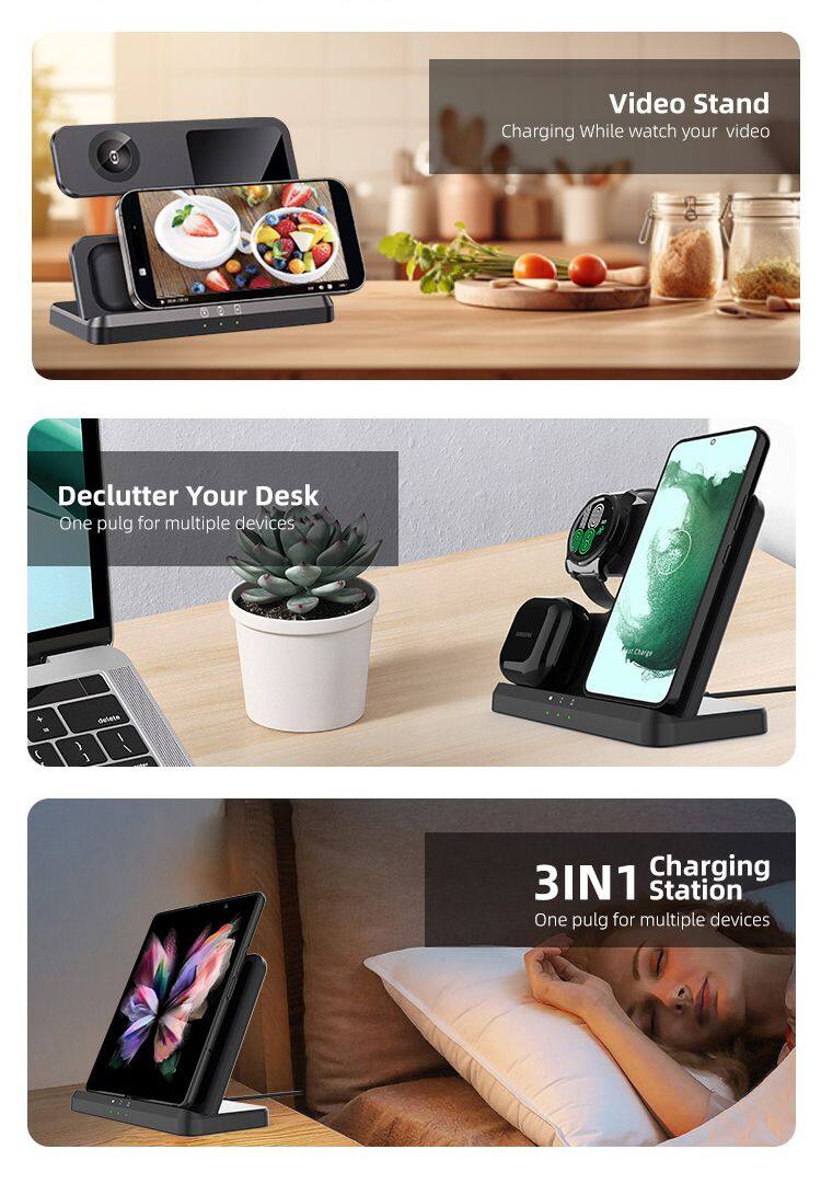 Home > Products > Other > Wireless Charger Charging Station & Android Multiple Devices for Samsung Galaxy S22 Watch 6-3 Buds 3 in 1 Fast Charger Stand