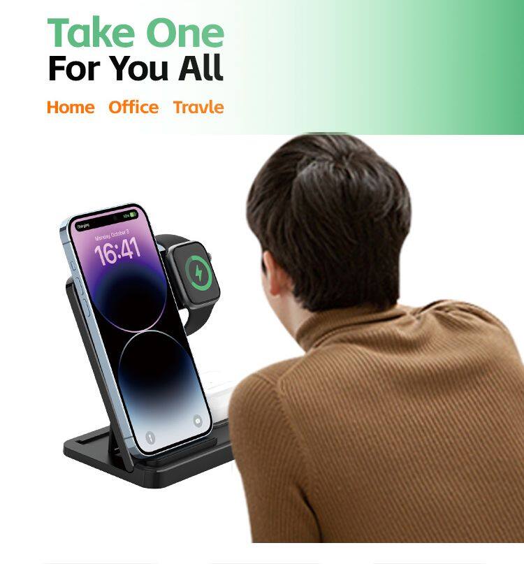 3 in 1 Charging Station Charger Stand Multiple Devices for iP 15 - 11 Watch 9 - Se - Earphone 3 2 Pro Foldable Wireless Charging