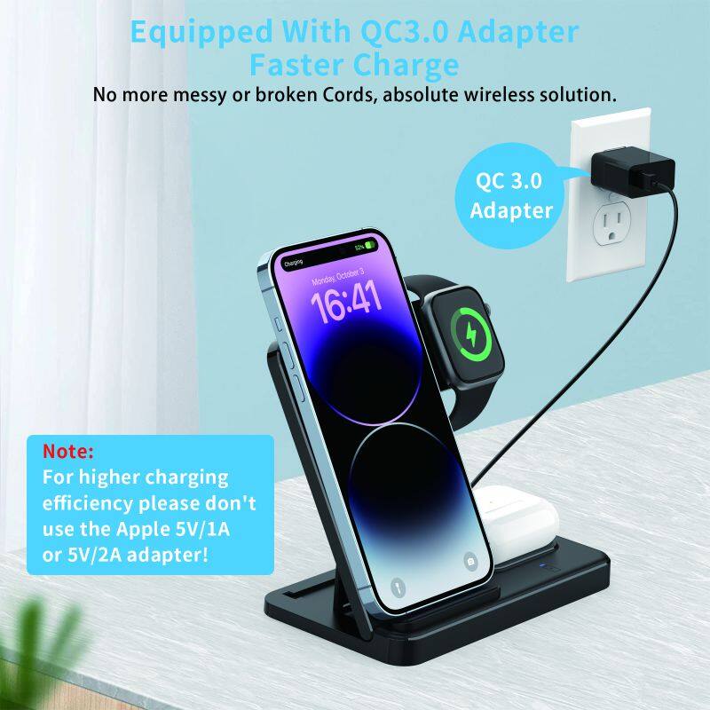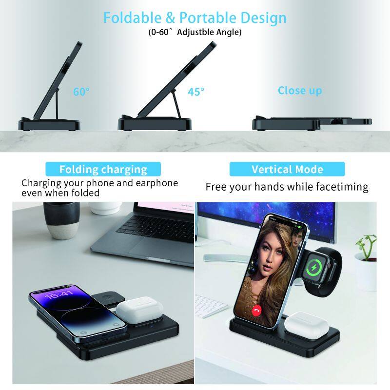 Factory Supply 3 in 1 Folding Wireless Charger Stand 15W Wireless Fast Charging Power Station for Smart Phone Watch Earphone
