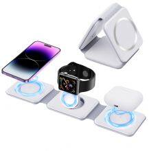 2023 Hot Sell Wireless Chargers Stand or Iphone 12 Magnetic Charger Foldable 3 in 1 Charger Station 15W Fast Charging Pro