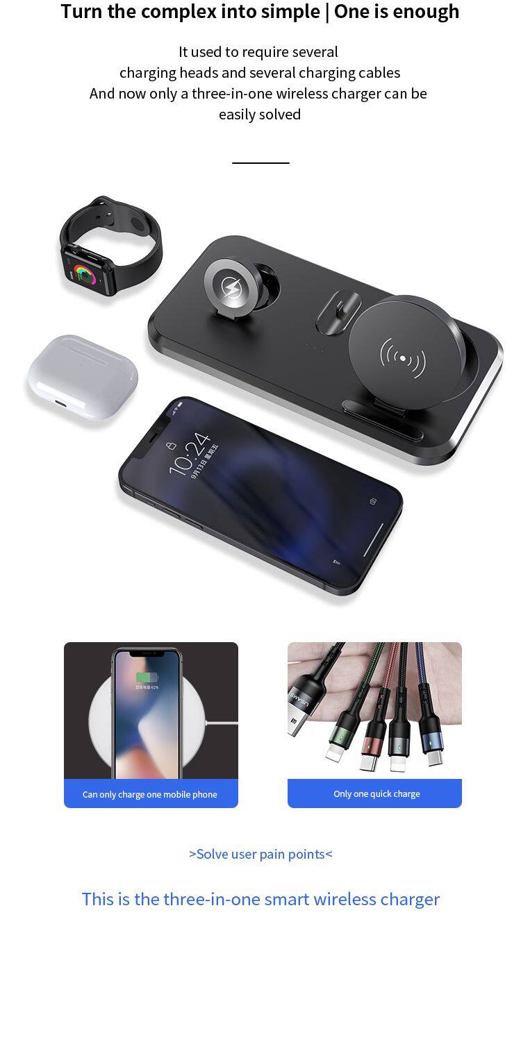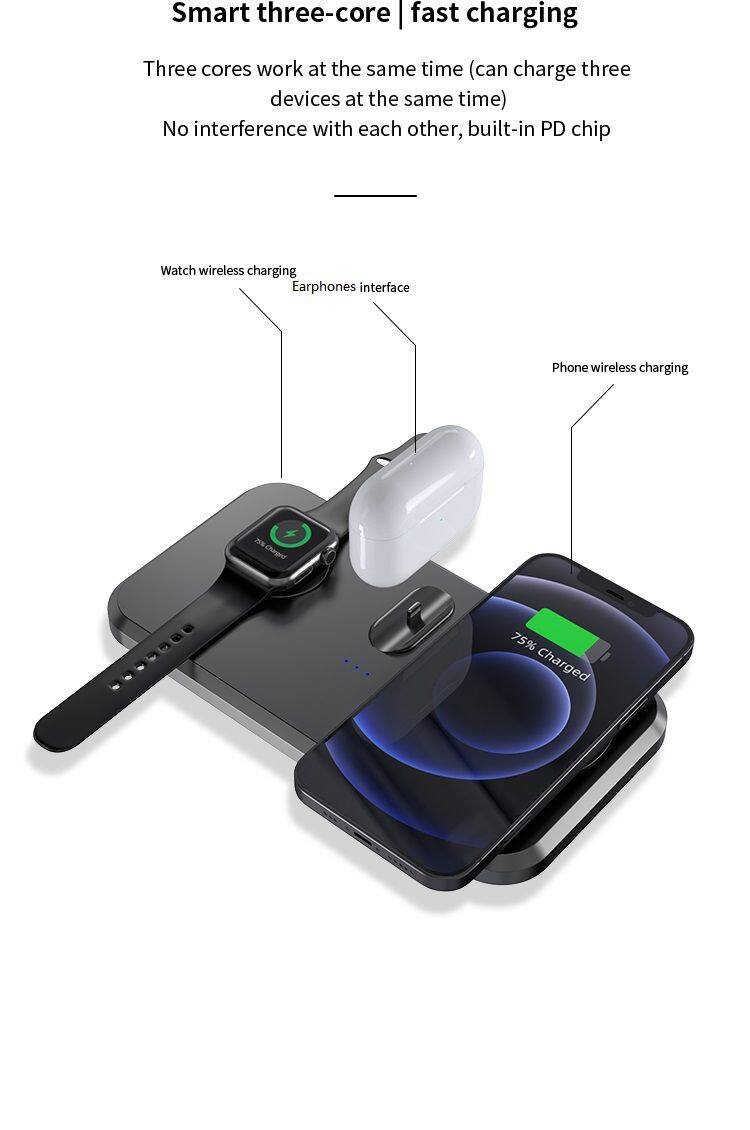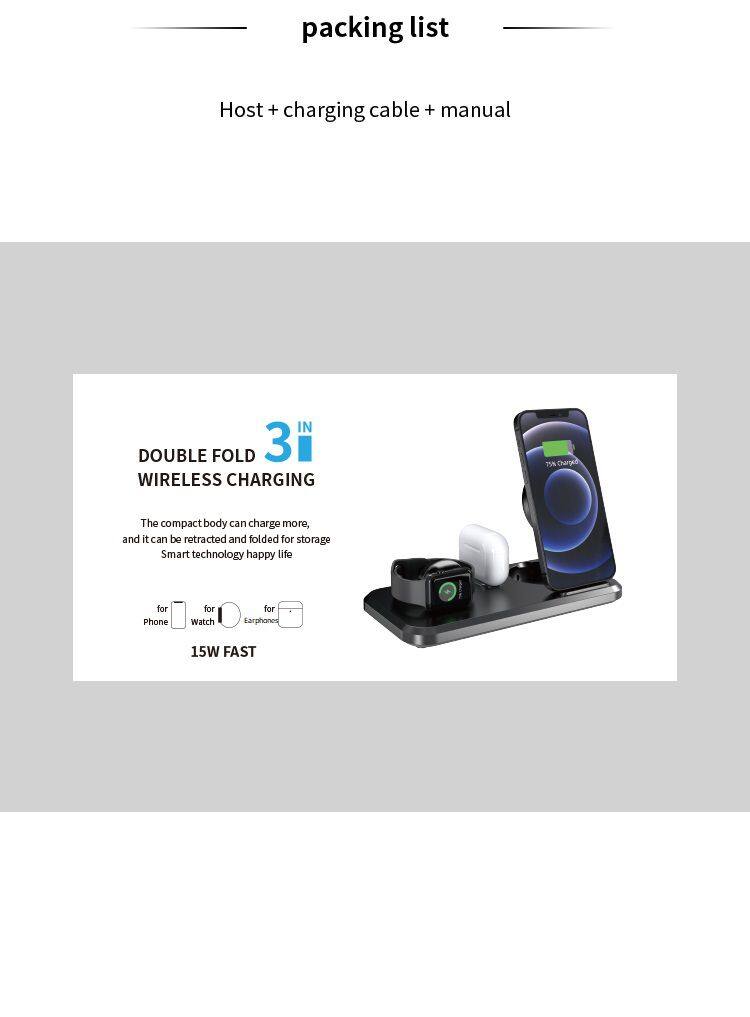 Home > Products > Other > 3in1 Foldable Wireless Charger Adjustable Multifunctional Stand Fast Charging Station for Earphone Smart Watch and Phone