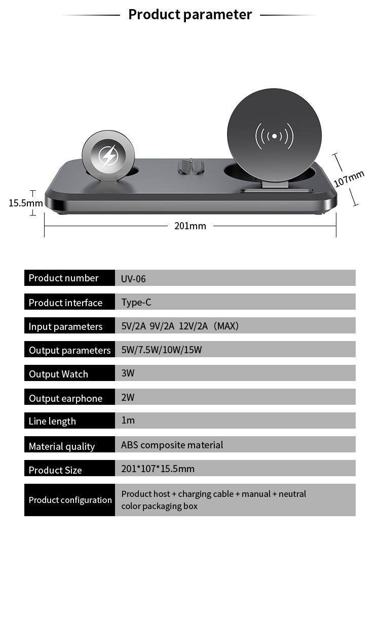6 in 1 Wireless Charger Stand for Samsung Phone Fast Charging for Watch Earphone Cargador Portatil 4in1 Wireless Charger Station
