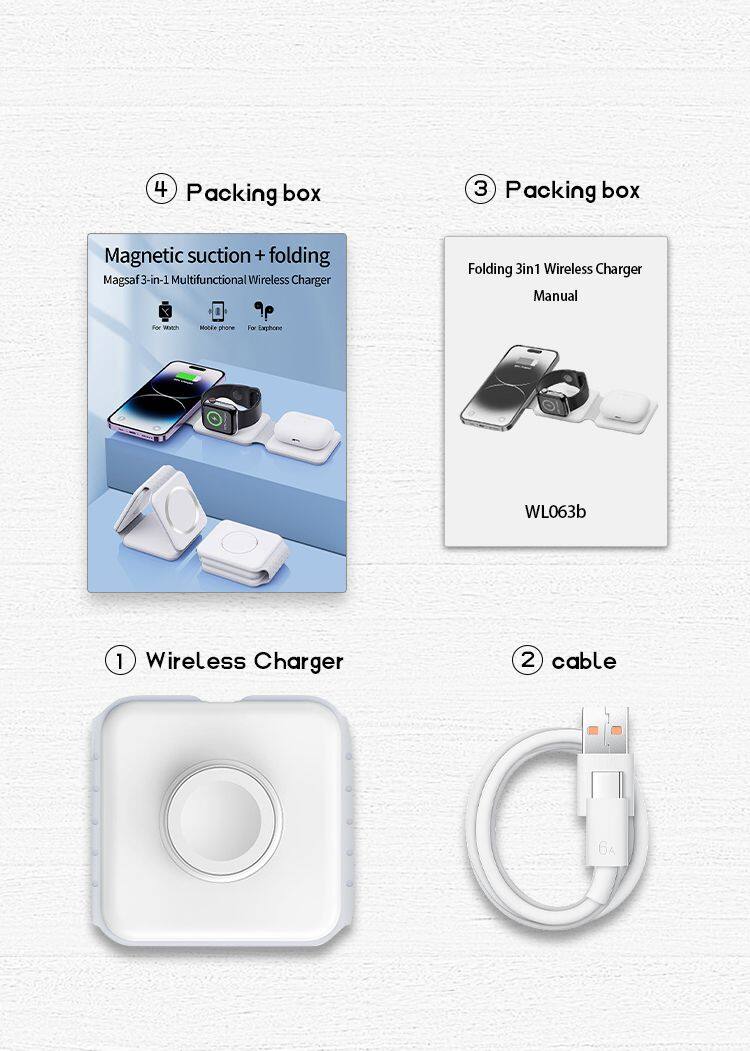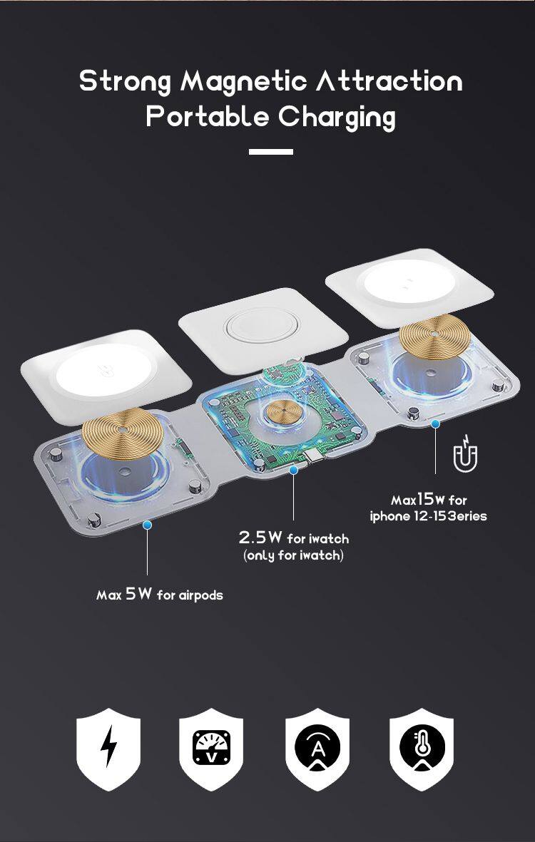 Home > Products > Other > Hot Selling Portable Max15w Fast Charge Multi-function Magnetic Foldable Wireless Charger 3 in 1 Wireless Chargers