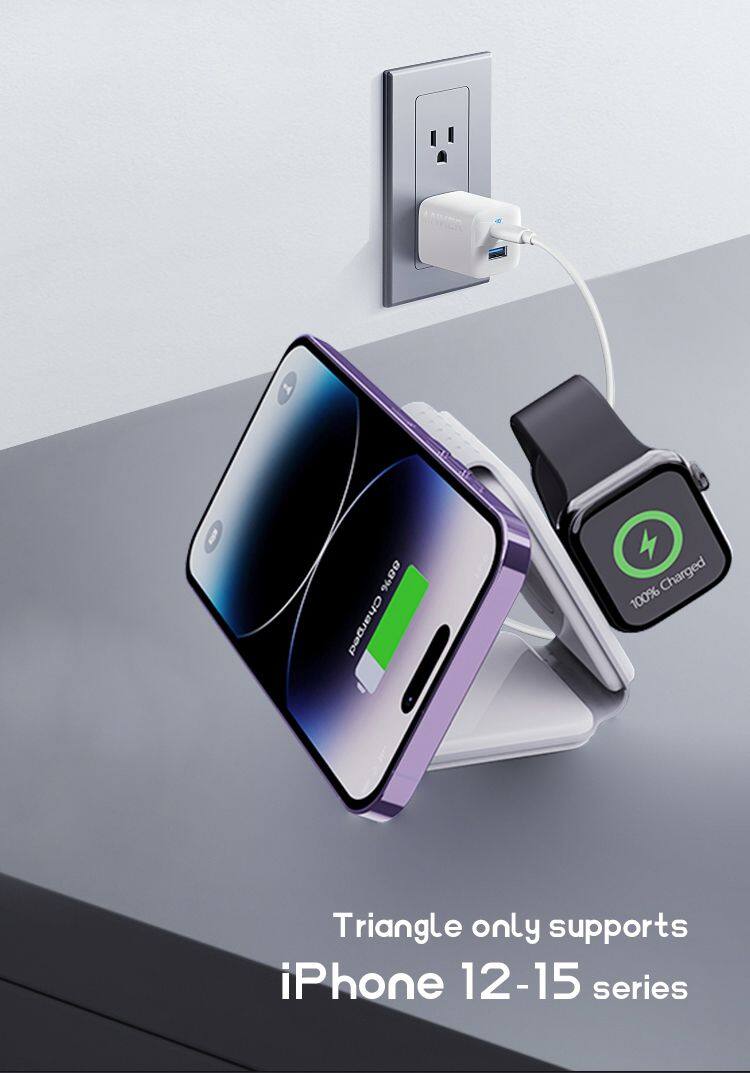 15W Multi Charging Station for Iphone 15 14 13 12 Phone Holder Magnetic Charger for Watch and Earphone 3 in 1 Wireless Charger