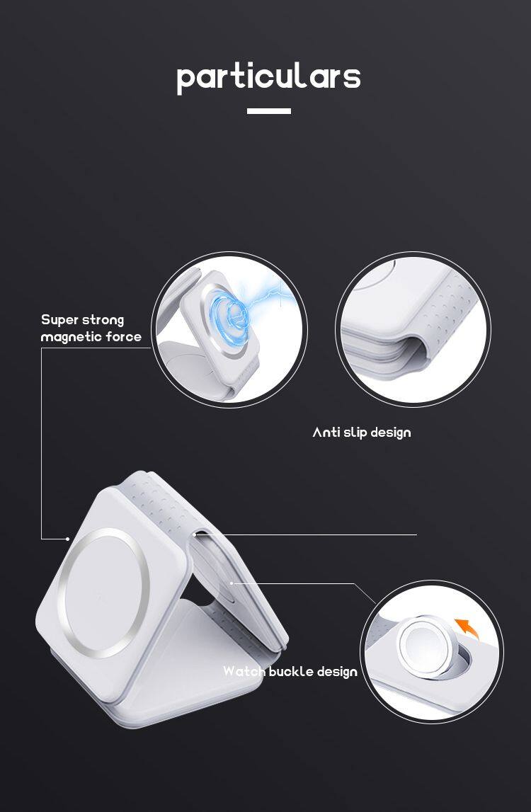 Foldable Portable 15W 3 In 1 Charging Station Pad Dock Desktop Stand Charger Wireless