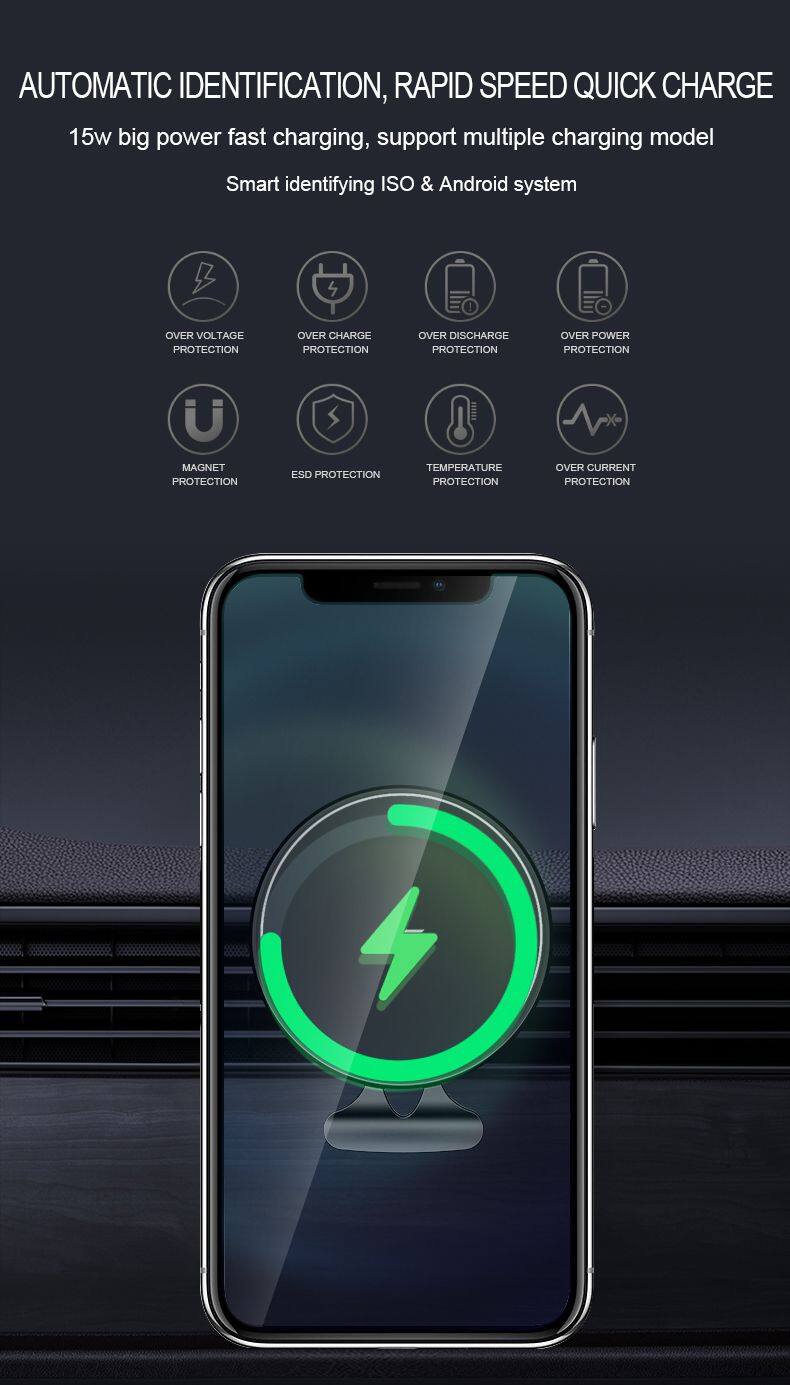 Smart Sensor Automatic Clamping 15W Car Wireless Charger Phone Holder Magnetic Wireless Charger Car Charger Holder