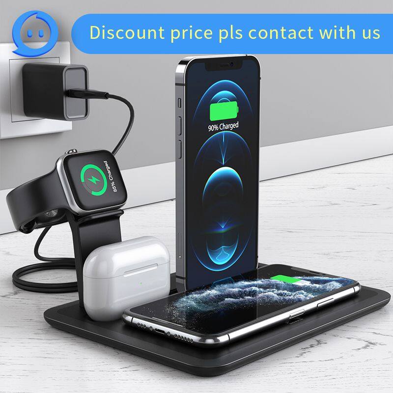 Home > Products > Other > Strong Compatible Charger Station for IPhone 11 Iwatch and Airpod Portable Battery Charger 4 in 1 Wireless Charger Stand