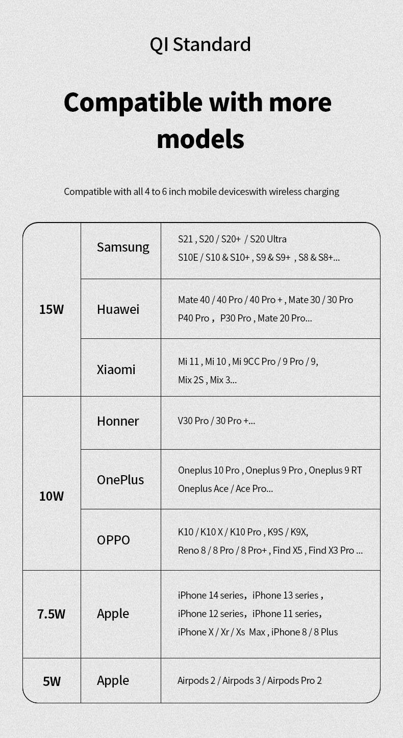 Below wireless charger function mobile list for your conference.
