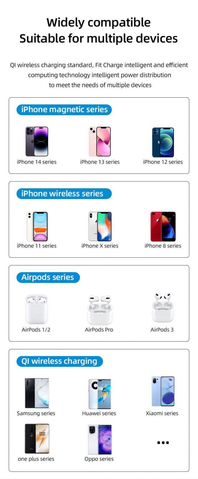 Smart 3 in 1 Wireless Charger for IPhone Samsung Enabled Devices Portable Charging Universal Wireless Charger Pad