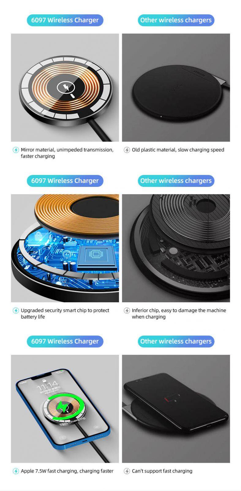 Transparent Desk Wireless Charger for Iphone Portable Charger 15W Samsung Fast Wireless Charging Universal Wireless Chargers