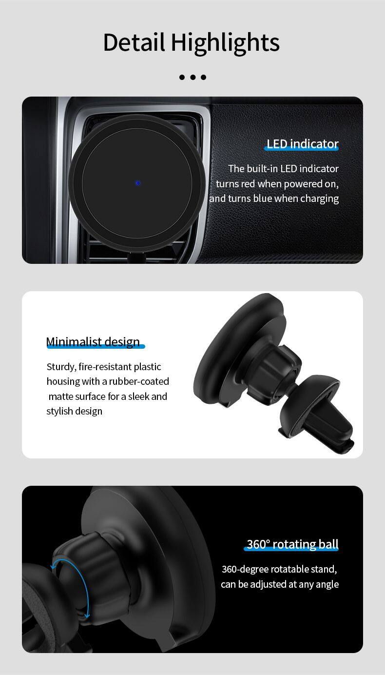 15W Wireless Car Charger With Magnetic Phone Holder Fast PD & Wireless Charging Output Power 10W 2-in-1 Car Mount for Phone
