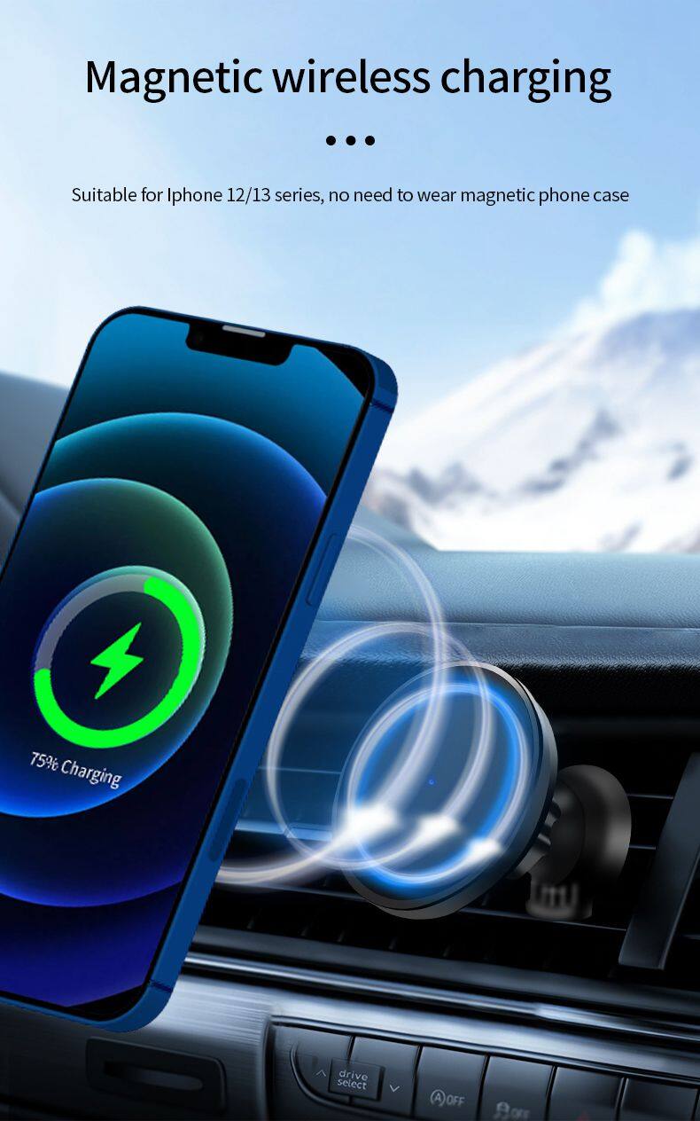 Magnetic Car Mount Charger for IPhone Wireless Car Charger With Magnetic Phone Holder 15W Fast Wireless Charger With Airvent