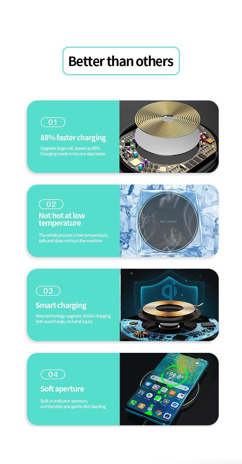 Product Name | Best Sell Intelligent Match 10W 7.5W Fast Charger With healthy light widely compatible smart mobile wireless phone charger |