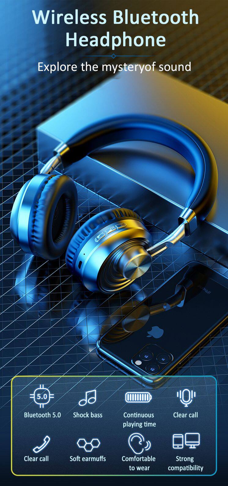 High Quality Wireless Headset BT5.0 Gaming Earphone Stereo Over Ear Headphones