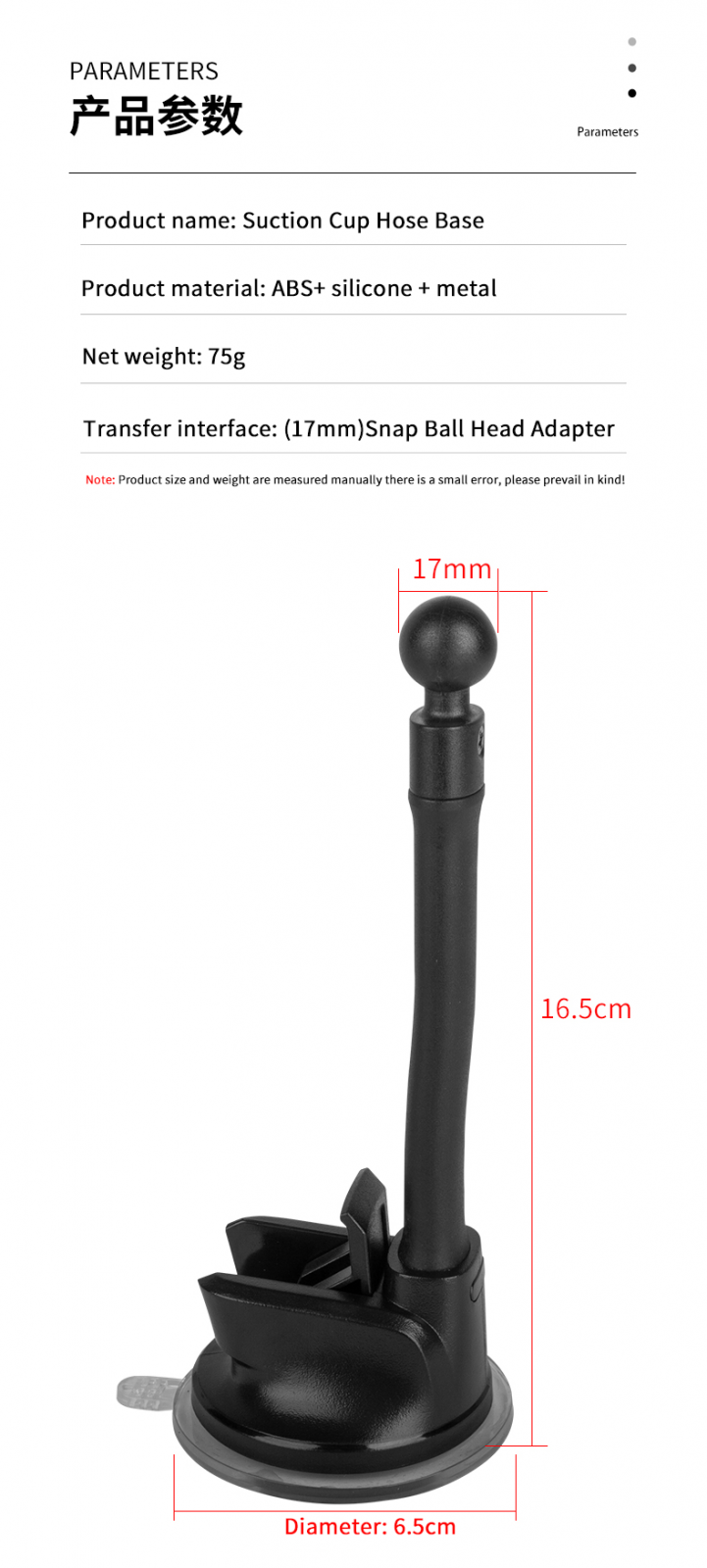 Car Holder Adapter 17mm 17mm Ball Head, T-Base Joint Conversion 1/4 Threaded Base 1'' Ball Head