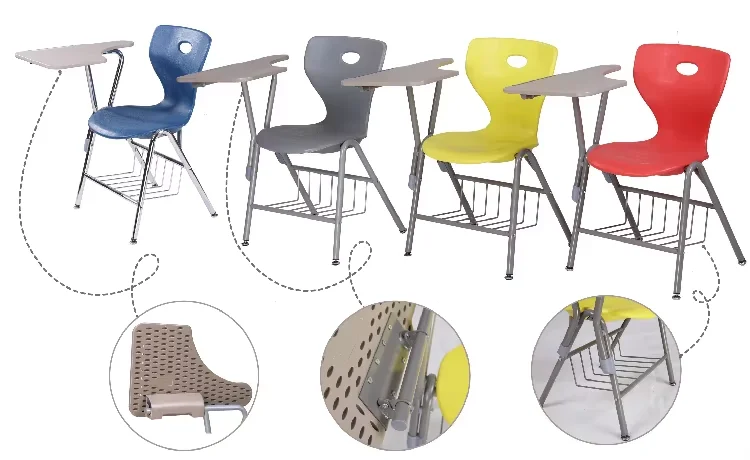 JS College Plastic School Training Chair With Writing Pad for Students