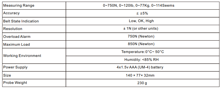 The Belt Tension Meter Mainly use for automotive belt tension measurement, also can measure and adjust ribbon,filamentous, linear, reticular and other wide objects tension. Applicable to the automotive, textiles, wire and cable, metalwire, plastic film, paper, printing, film industries etc.