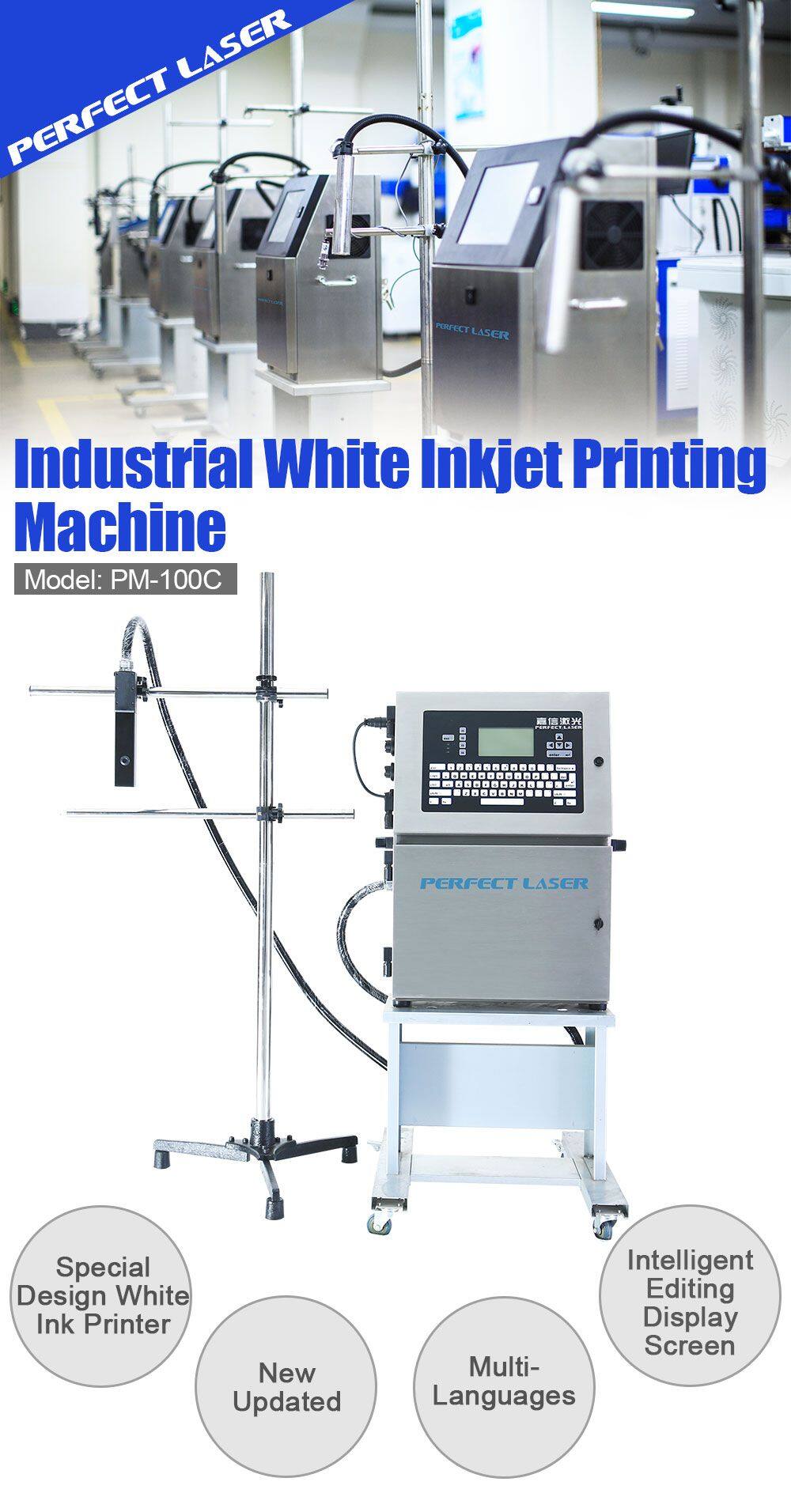 As the domestic first-class industrial inkjet printing machines manufacturer, Perfect Laser developed this new white inkjet printer PM-100C on the basis of continuous technological innovation.