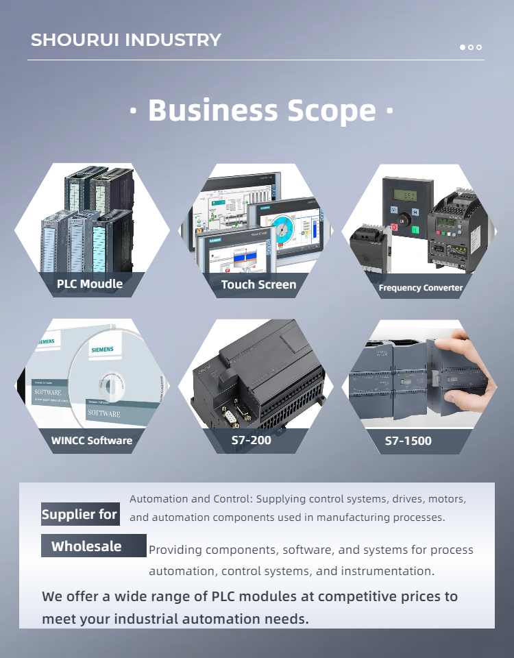 The company is mainly engaged in Siemens PLC module, CPU, touch screen, wire and cable, frequency converter, CNC server, Broadcom software, memory card, power supply, AC and DC traditional devices. Welcome to the store for consultation!