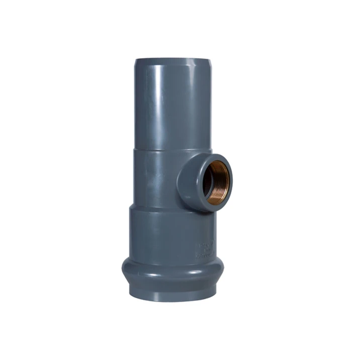 DIN8063 PVC Pipe Fitting Grey Color PN16 PVC Two Faucet Tee With Copper Screw FM