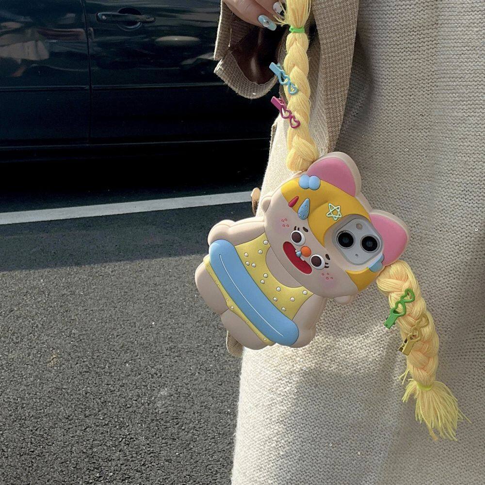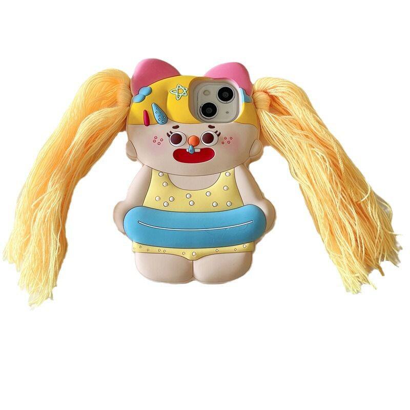 Cartoon Cute Double Braid Swim Ring Girl Shock-proof Silicone Phone Case 12 13 14 15 Pro Max