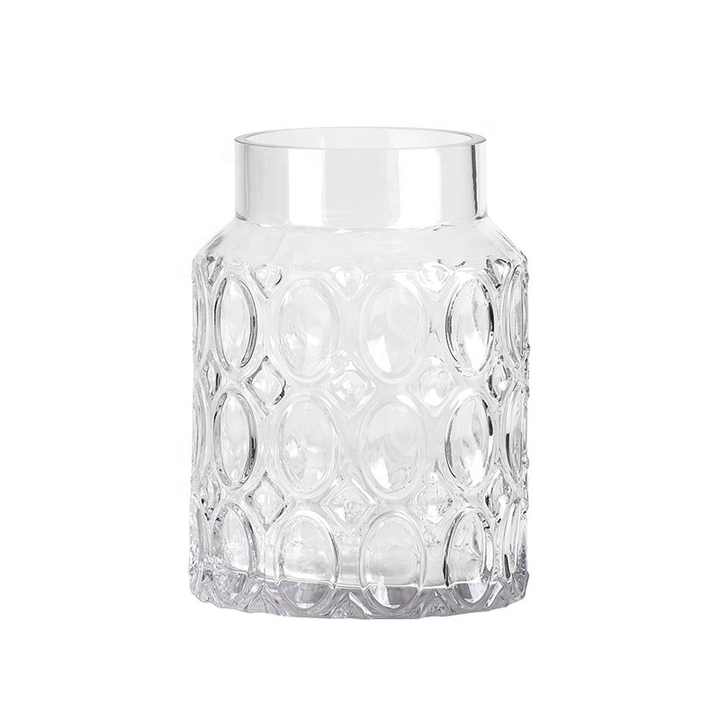 - Glass Material Clear Ribbed Large Jar Glass Vase for Home