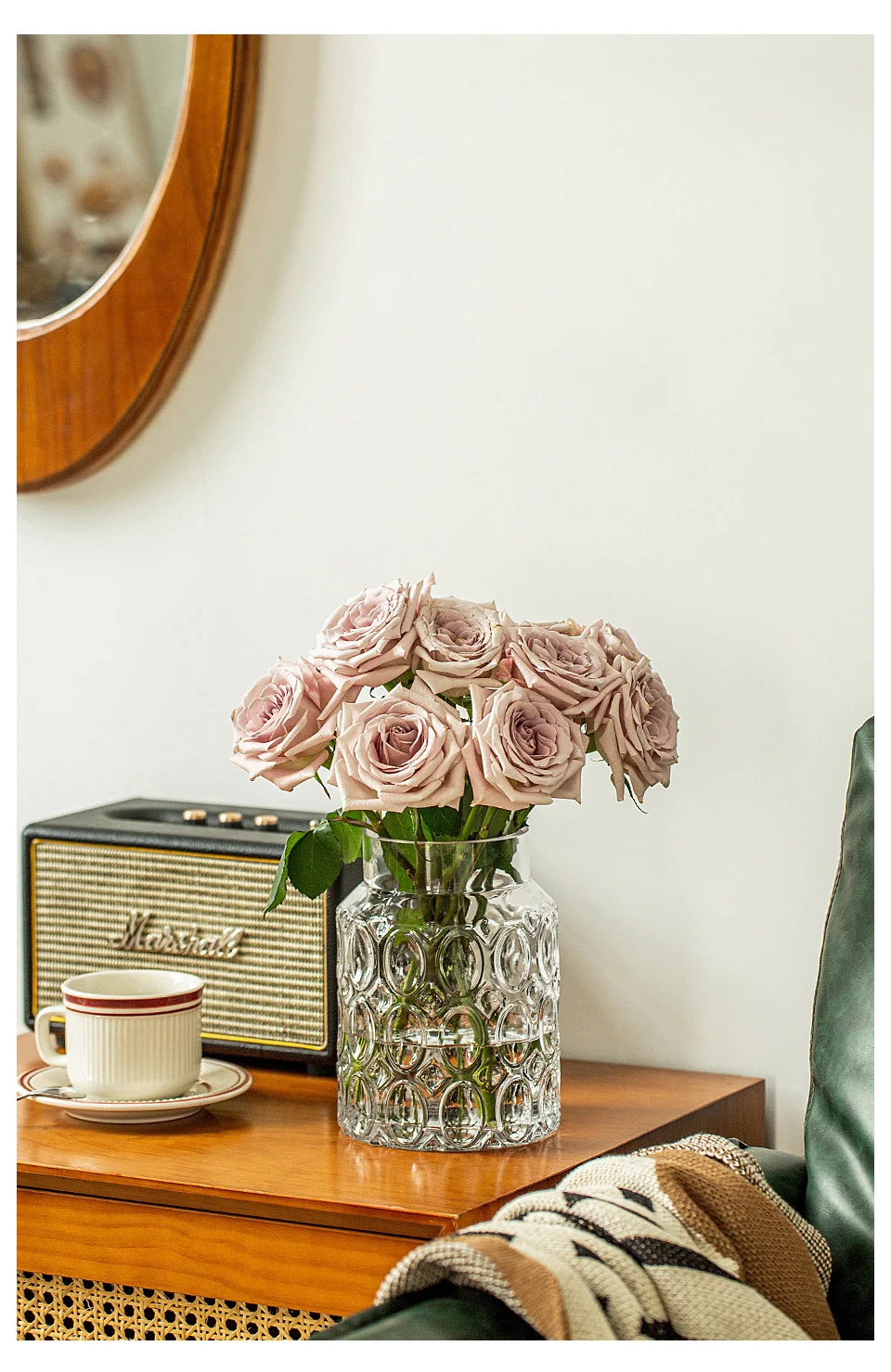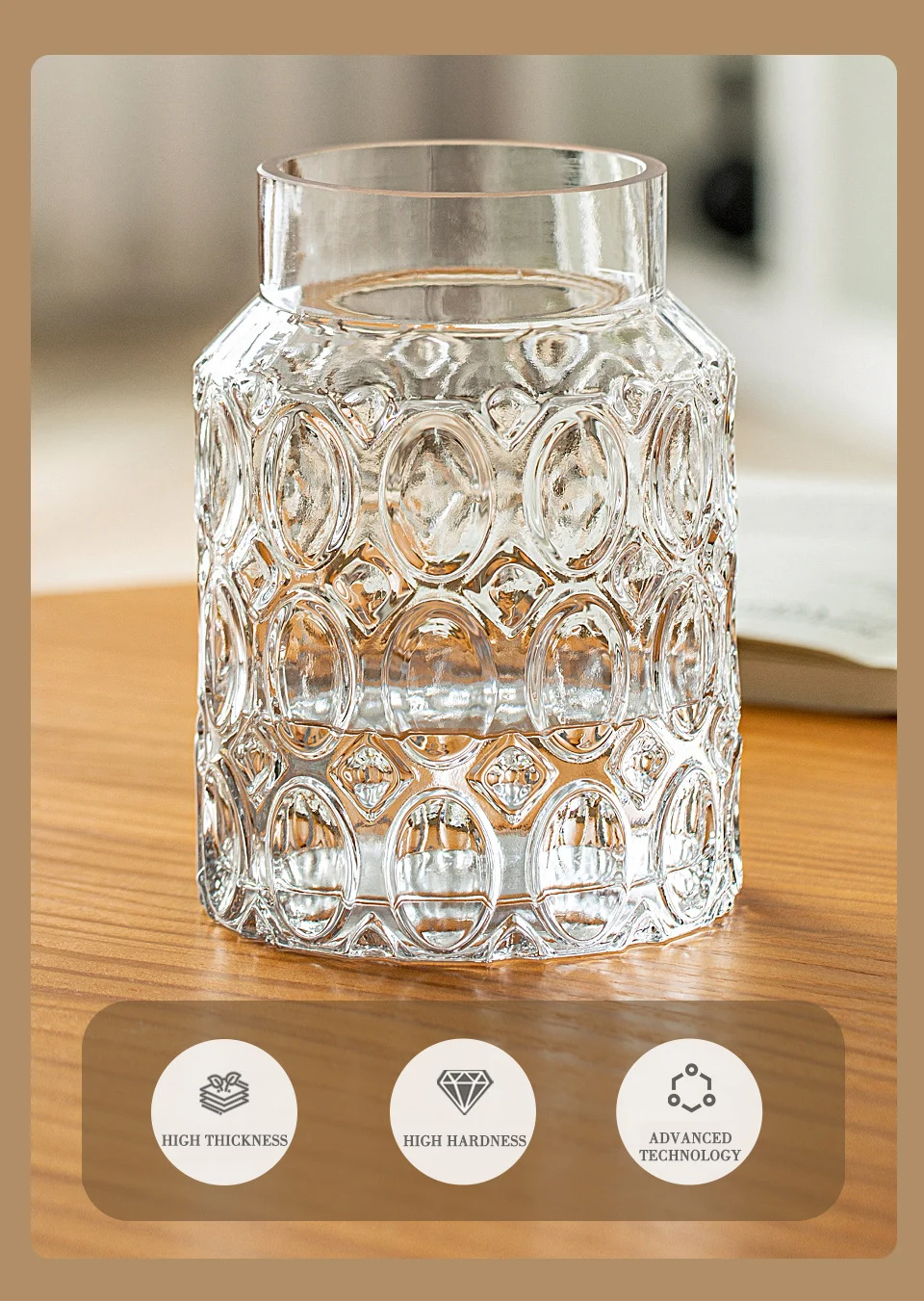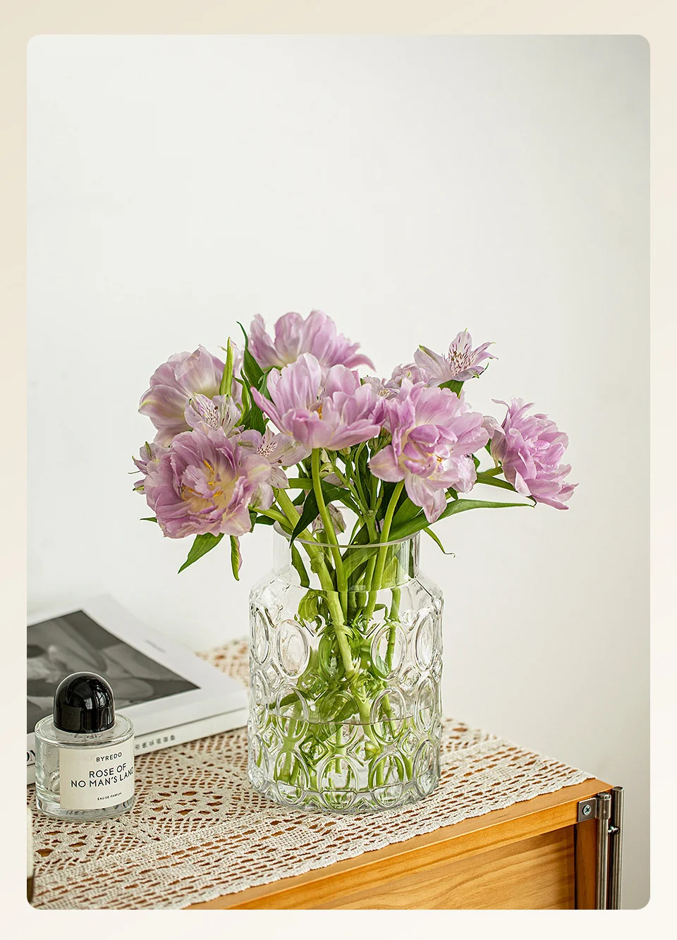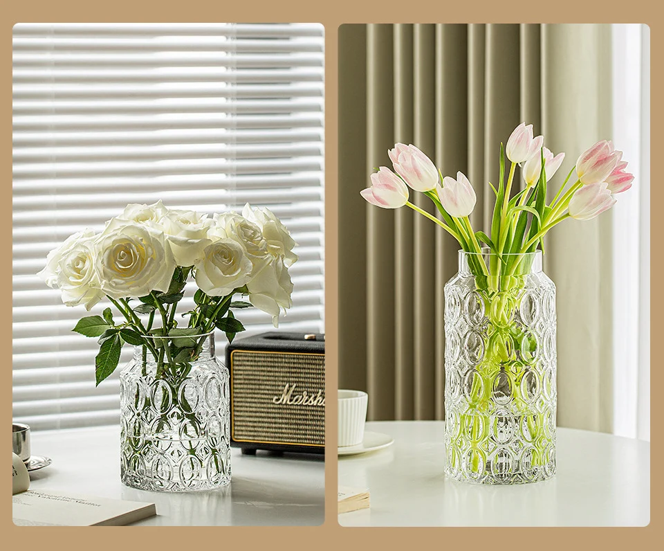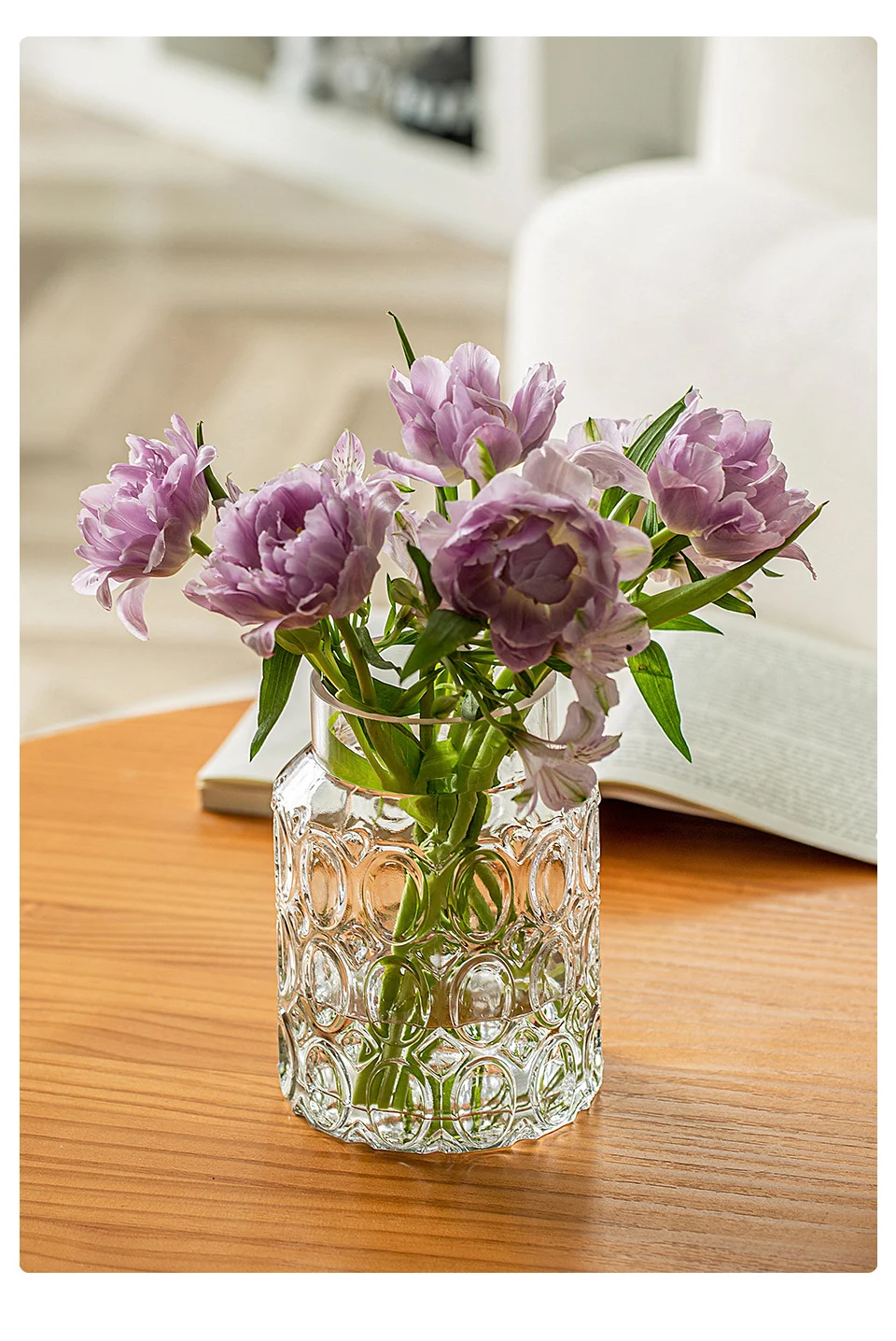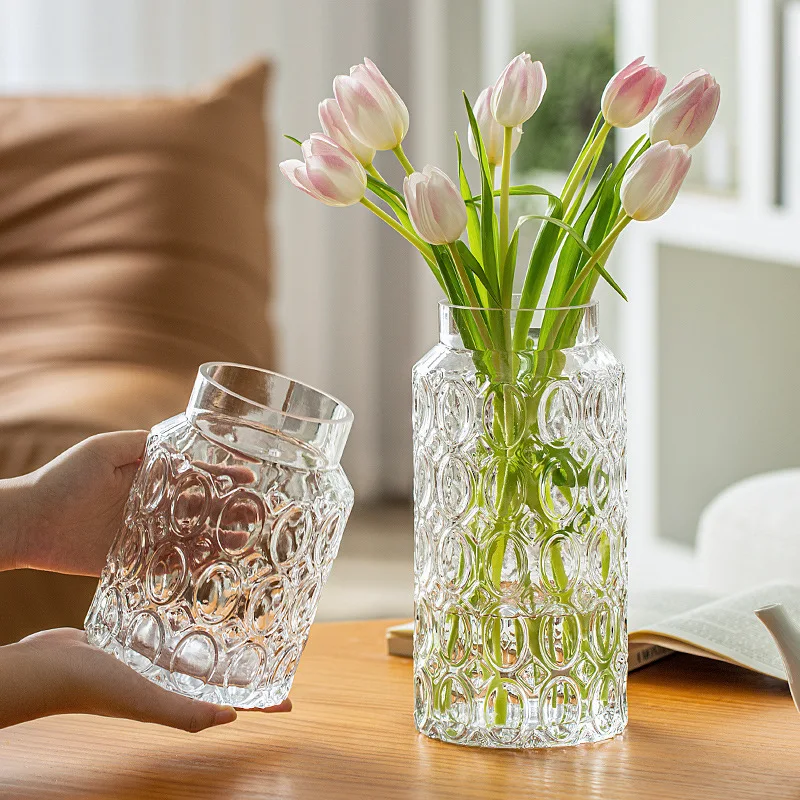 Flower Glass Vase Jar Vase Transparent Pattern Glass Blown Large and Small Hydroponic Creative Home Decoration Carton