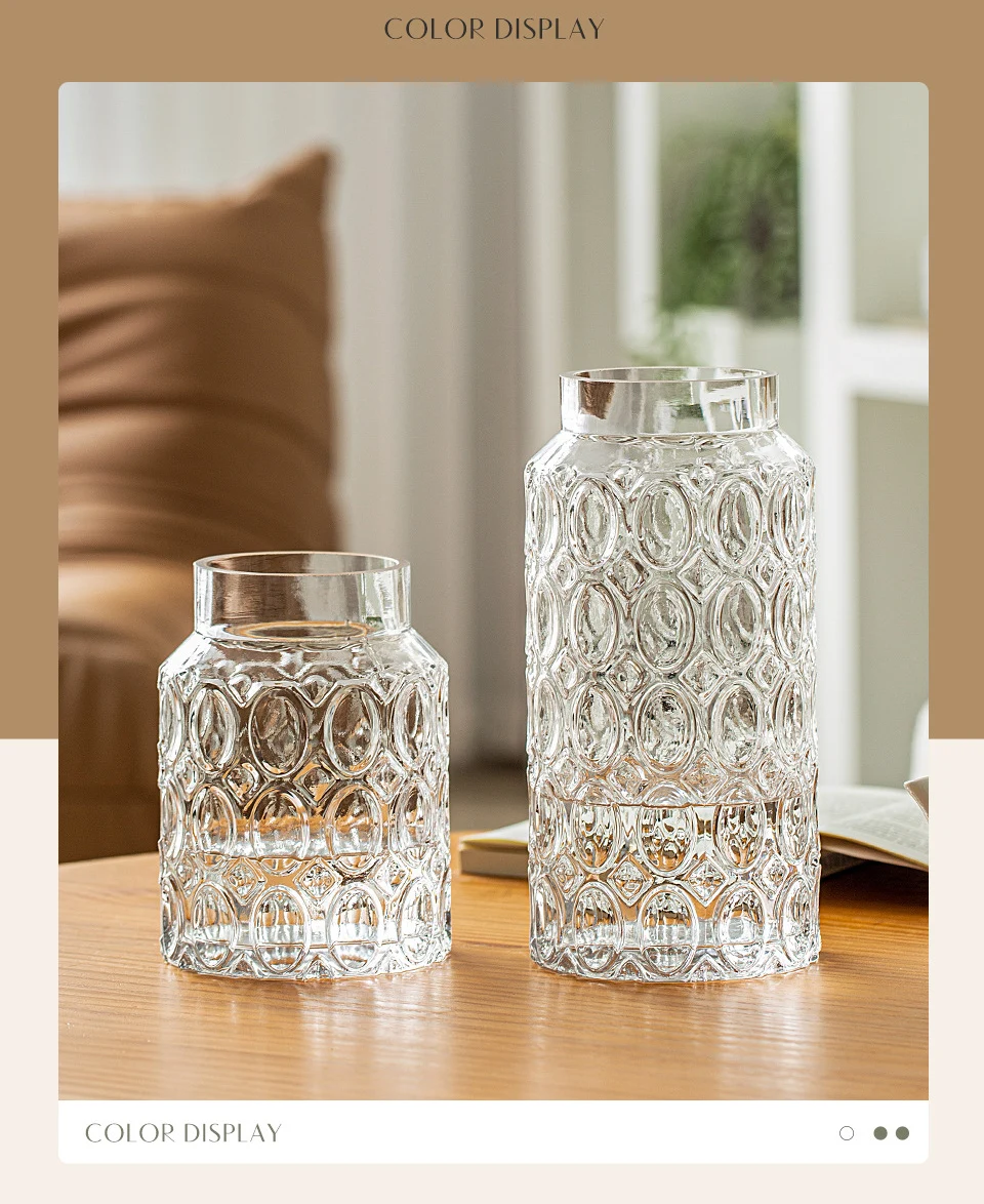 Home > Products > Glass vase > Flower Glass Vase Jar Vase Transparent Pattern Glass Blown Large and Small Hydroponic Creative Home Decoration Carton