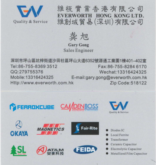 1. Ferrite Cores and magnetic ring:Ferroxcube, Magnetics, DMEGC, TDK-EPCOS, Arnold, Laird, ACME, Fair-Rite, CSC;