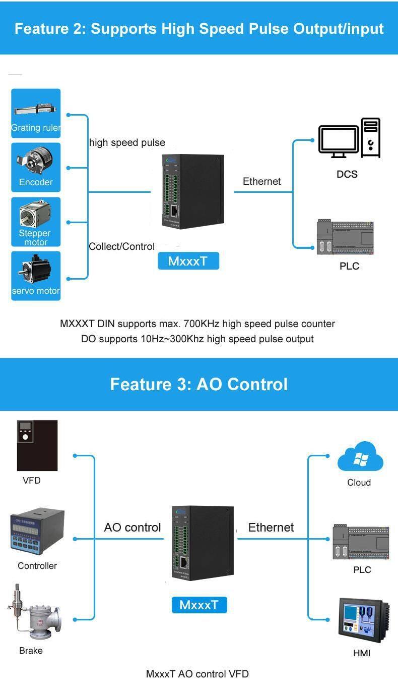 PNP NPN High Pulse Output Supports Modbus TCP MQTT SNMP PLC Expansion I/O Module