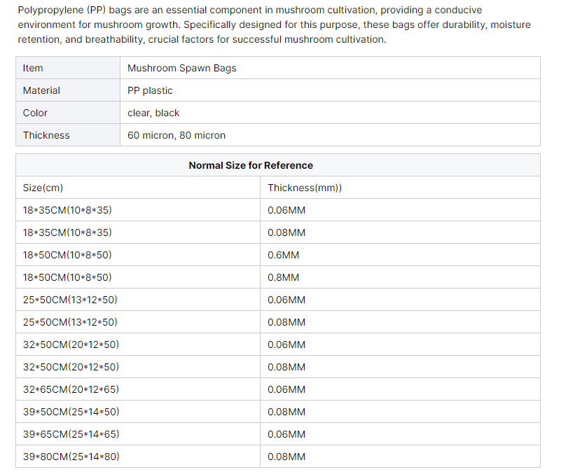 | Model Number | mushroom growing bags | Material | Plastic |