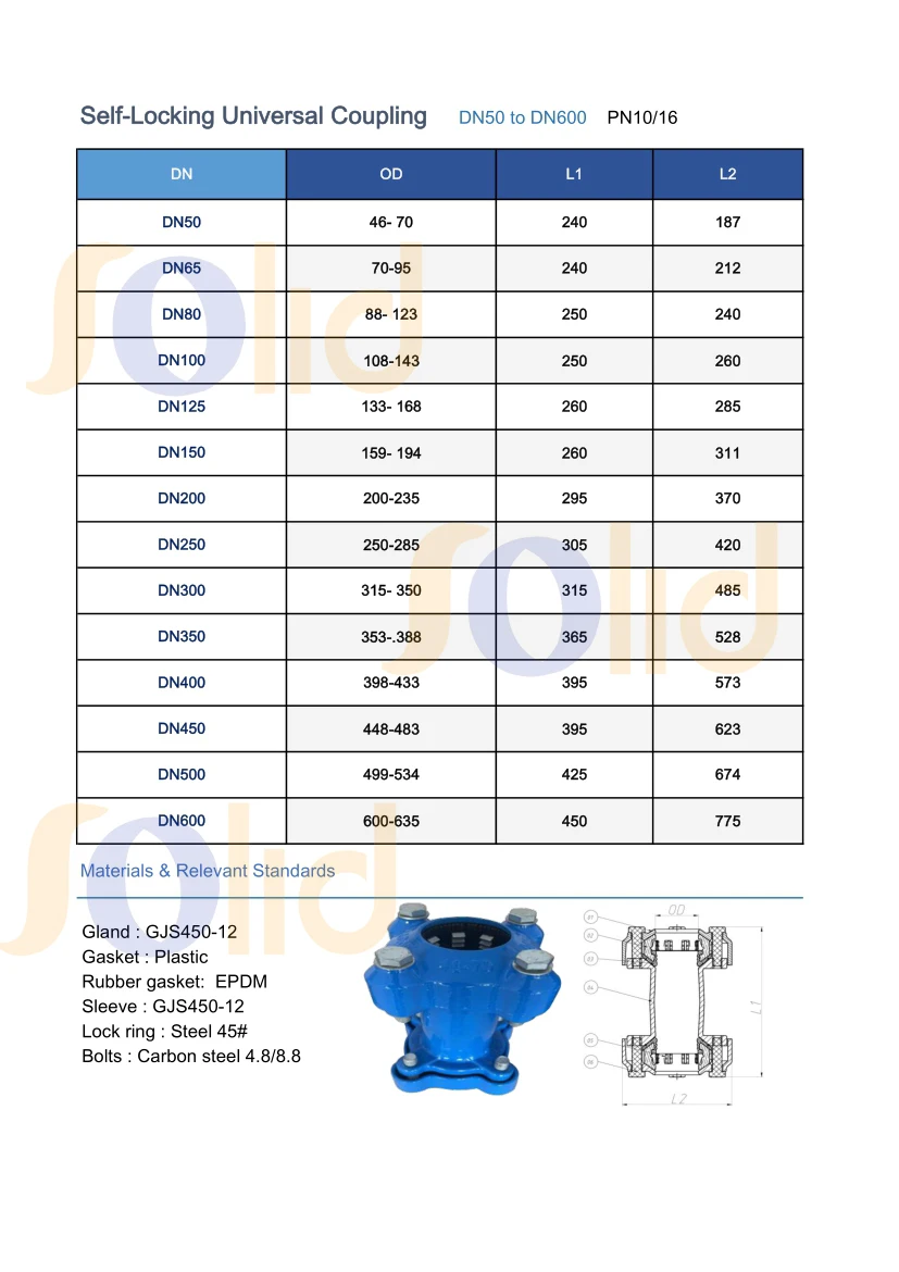 Ductile Iron GGG50 Self-Locking Universal Coupling