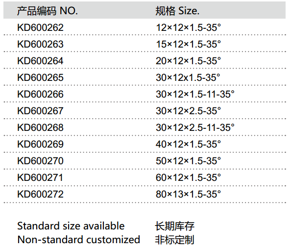 | Model Number | 40*12*1.5-35° |
